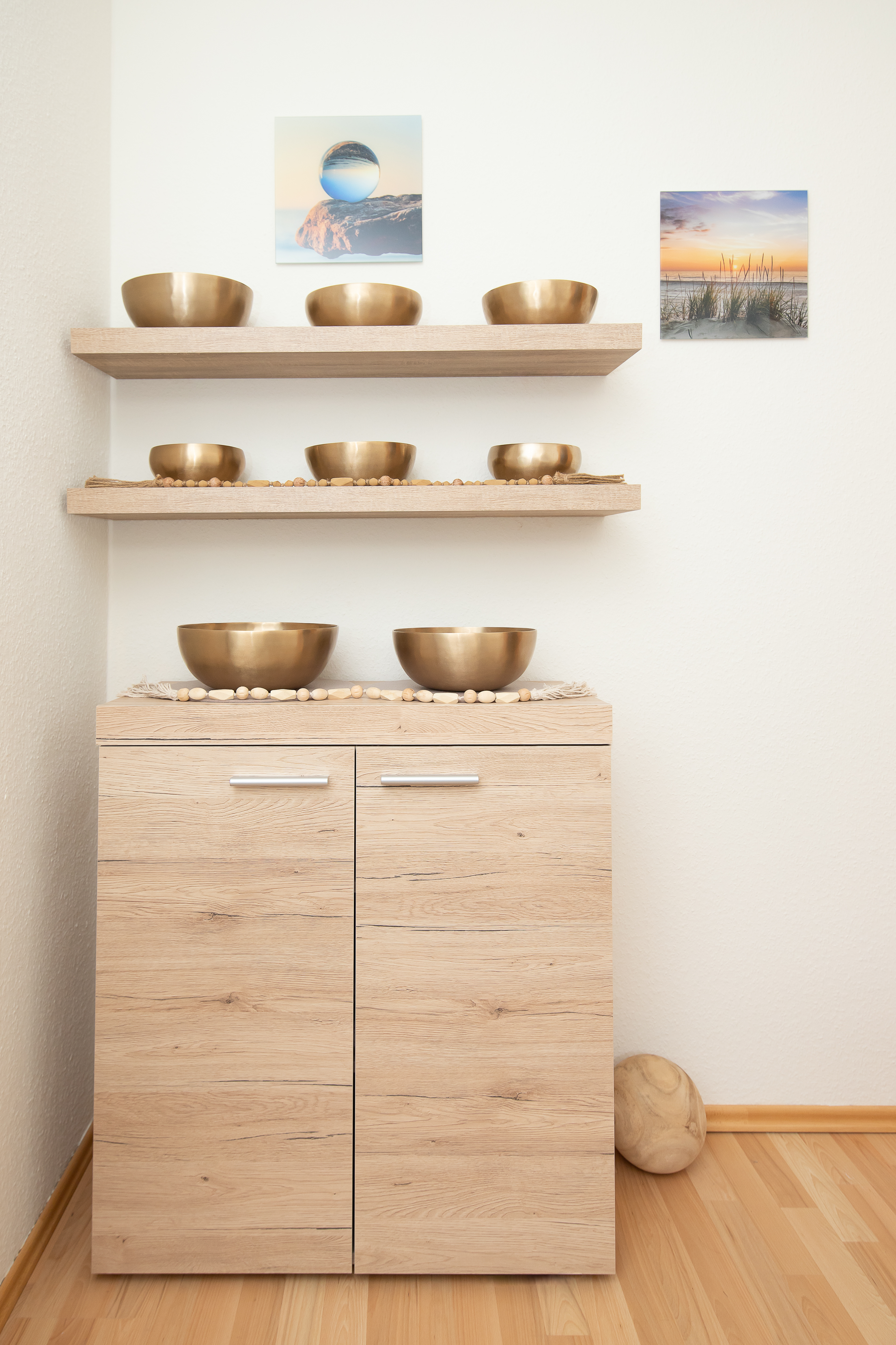 Hier durfte ich der Katja helfen und Ihre hübschen Klangschalen, ganz schlicht, in Szene setzten.